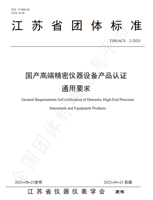 近日,江蘇省儀器儀表學(xué)會正式批準(zhǔn)發(fā)布團(tuán)體標(biāo)準(zhǔn)《國產(chǎn)高端精密儀器設(shè)備產(chǎn)品認(rèn)證通用要求》(標(biāo)準(zhǔn)編號:T/JSIACS 2 - 2025)。該標(biāo)準(zhǔn)嚴(yán)格依據(jù)《江蘇省儀器儀表學(xué)會標(biāo)準(zhǔn)管理辦法(試行)》制定,圍繞國產(chǎn)高端精密儀器設(shè)備產(chǎn)品認(rèn)證,在基本要求、國產(chǎn)化要求、品質(zhì)屬性等關(guān)鍵維度作出明確規(guī)范,適用于國產(chǎn)高端精密儀器設(shè)備產(chǎn)品的通用認(rèn)證場景。